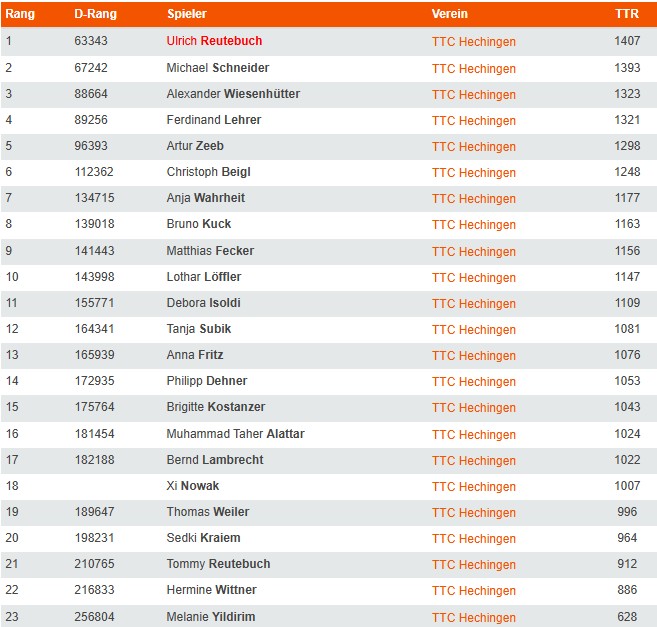 Sa. 12.10.2024 17:30 (1) TTC Hechingen I TTC Rangendingen II 9 : 6